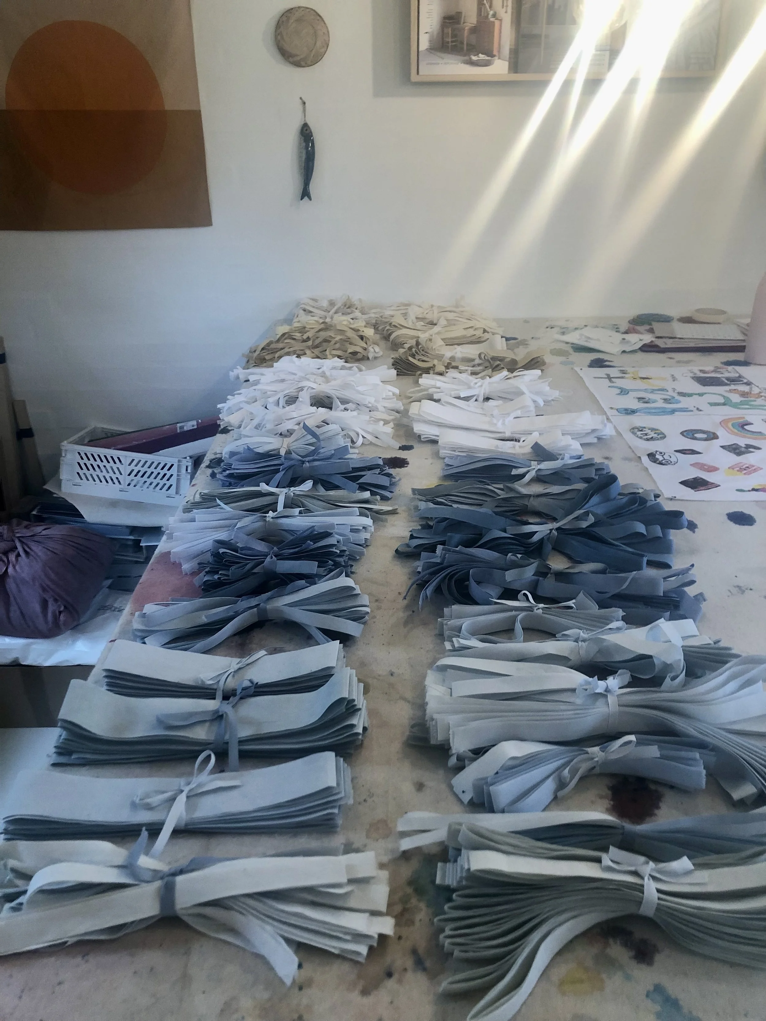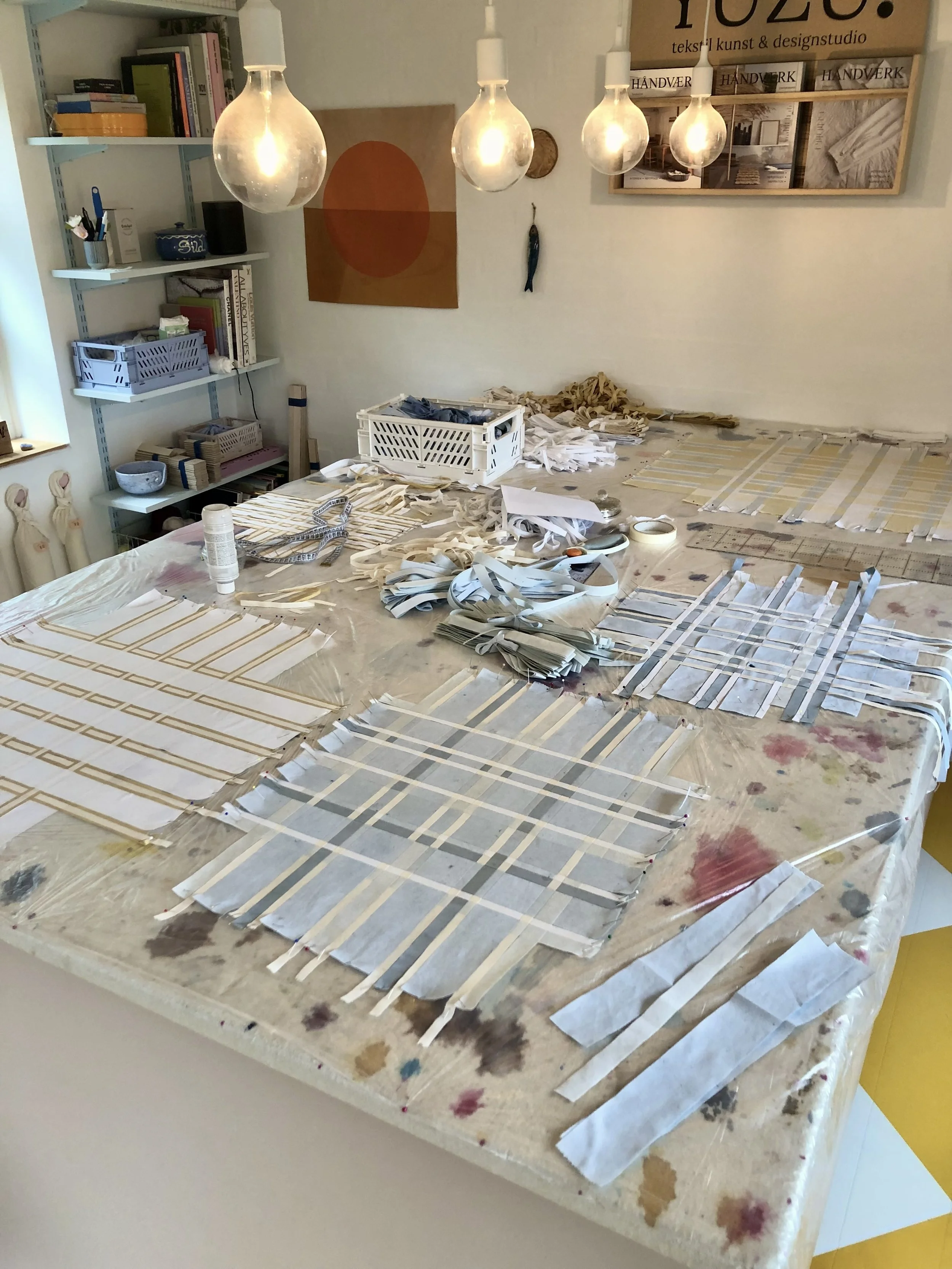 EFTERÅR værkerne er inspireret af de helt særlige farver, der opstår på himlen i efterårsmånederne. En kombination af klare, lysende farveglimt og ulmende, mørke skygger mixet med de mere dæmpede og bløde pastel-nuancer. En farveskala karakterisktisk for netop efteråret og dens, på én og samme tid, både brændende, betagende og lunefulde himmel, der bevæger sig mod de mørkere måneder. En påmindelse om årstidernes skift, årets rytmiske gang og naturens evige cyklus, der gang på gang lader os vende hjem og reflektere over tiden der er gået, og dét der venter forude.